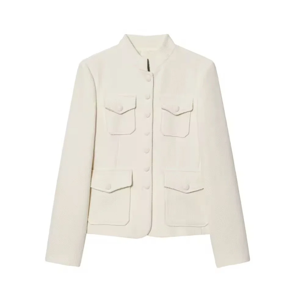 Effortlessly elevated, the Riviera Jacket is your new off-duty essential. Crafted in a beautiful textured bouclé-weave fabric, this structured cream jacket features four utility pockets, polished silver button detailing, and a clean collarless neckline, the kind of piece that looks just as good dressed up as it does thrown over a casual fit!